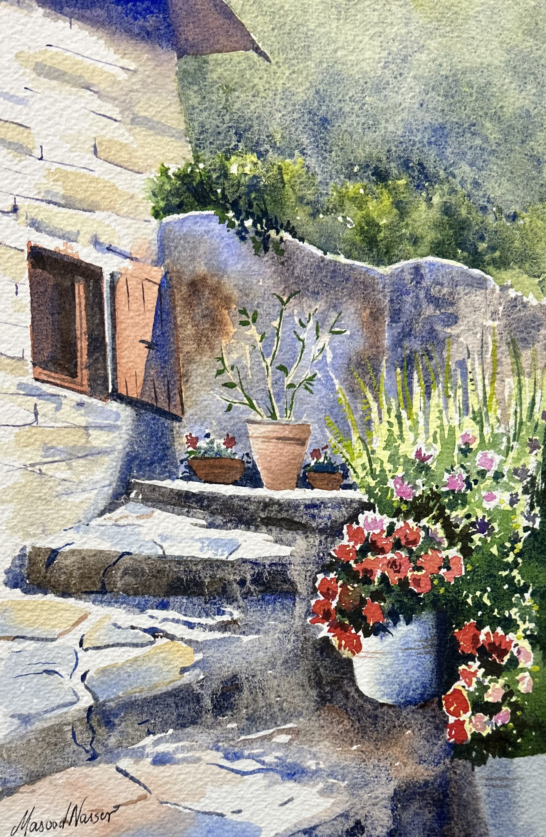Rocky steps and Bougainvilleas